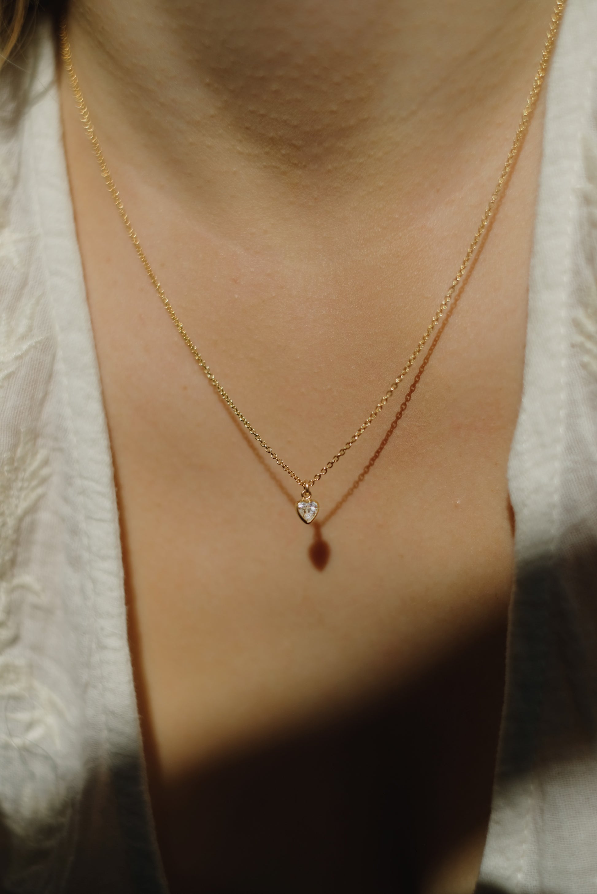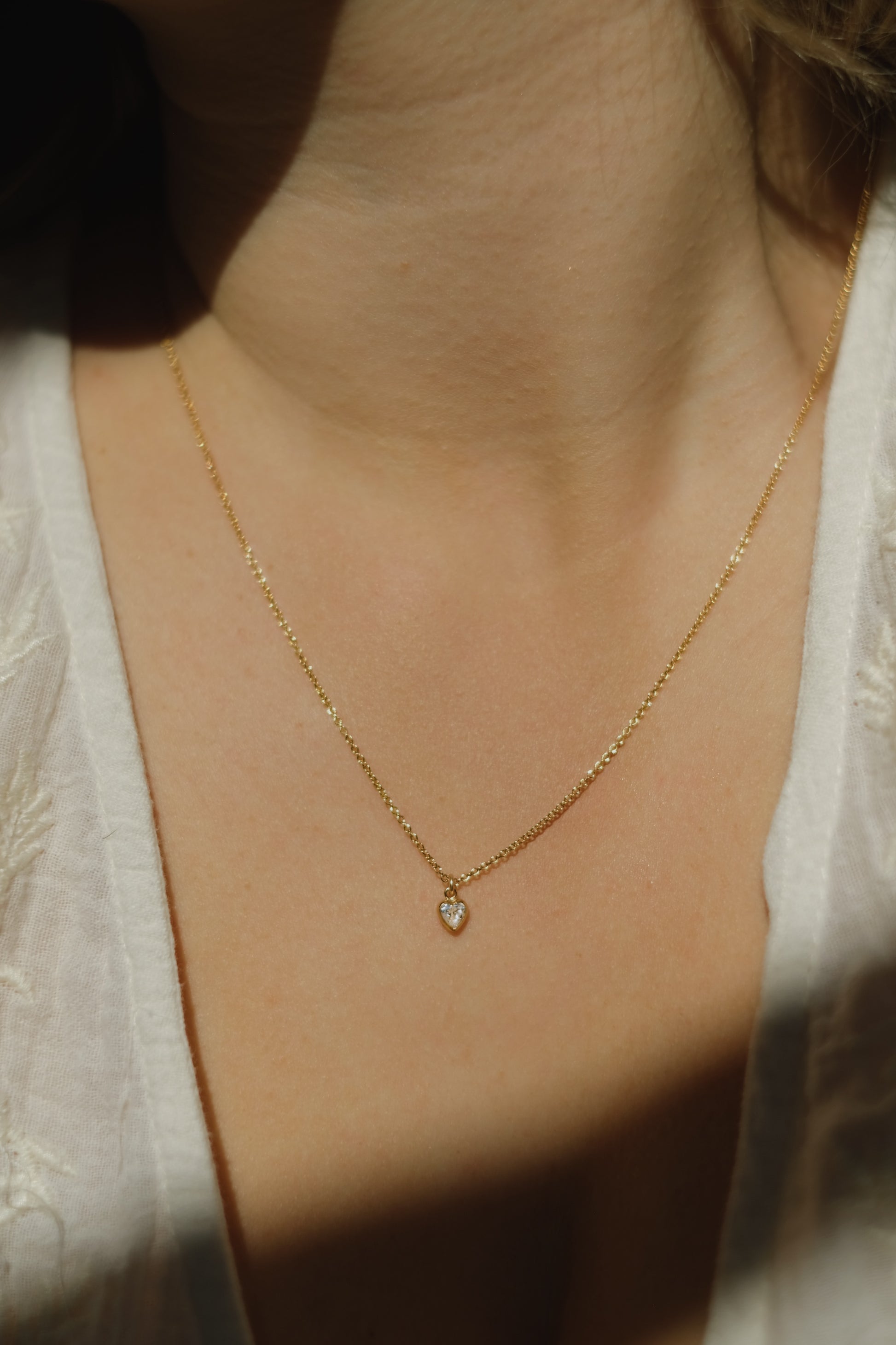 Eine wunderschöne feine Halskette mit einem minimalistischen Herz CZ Anhänger.