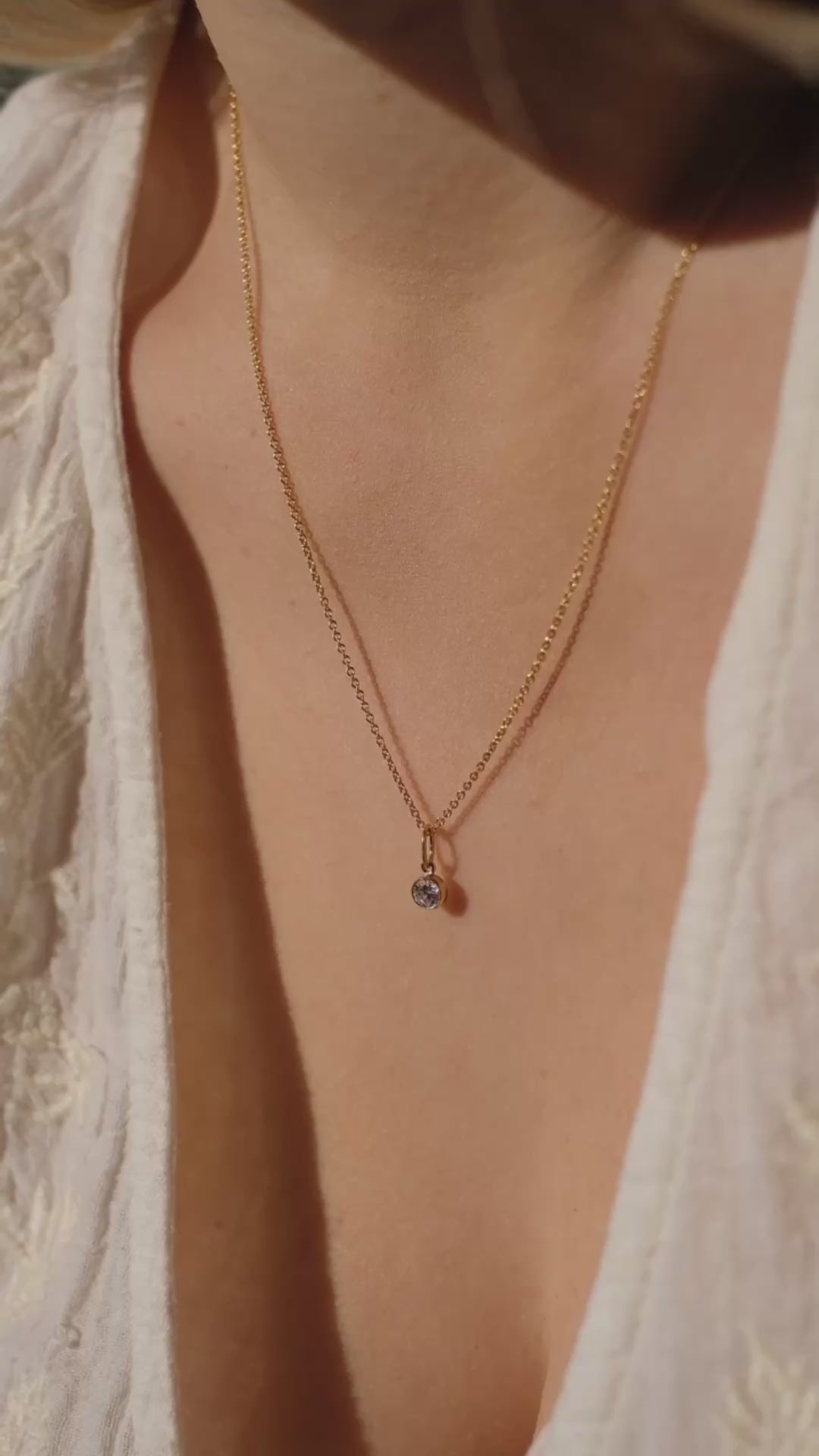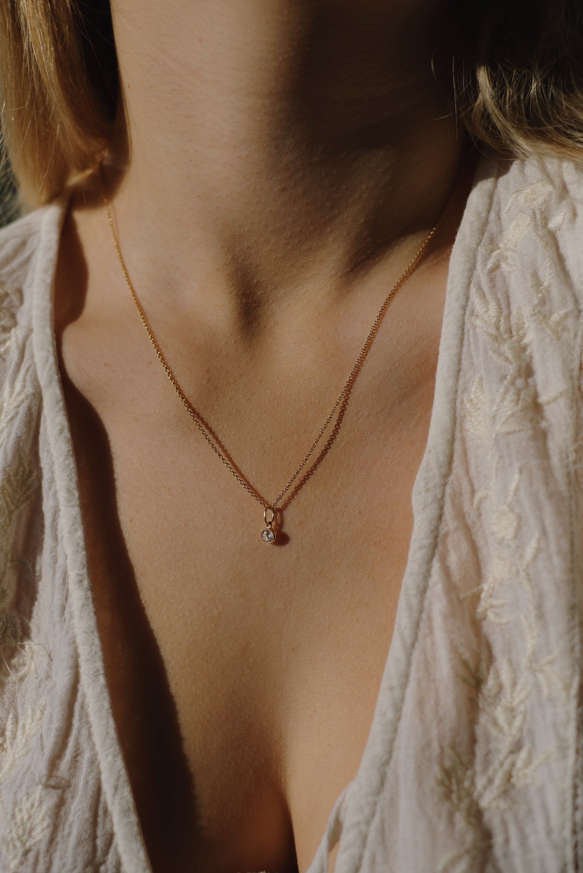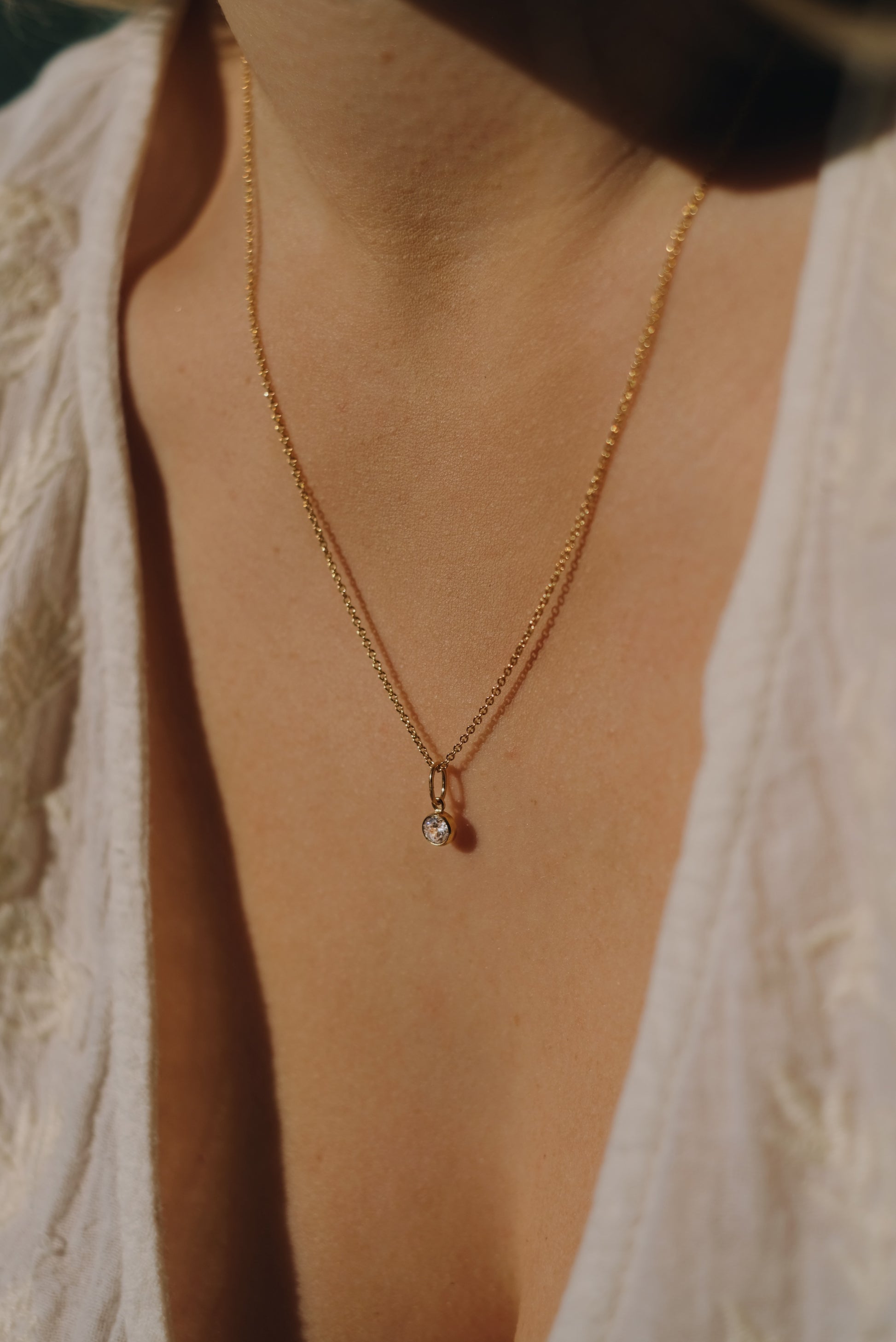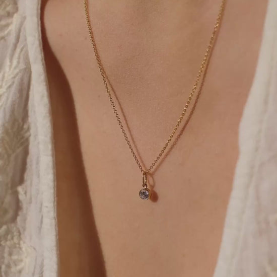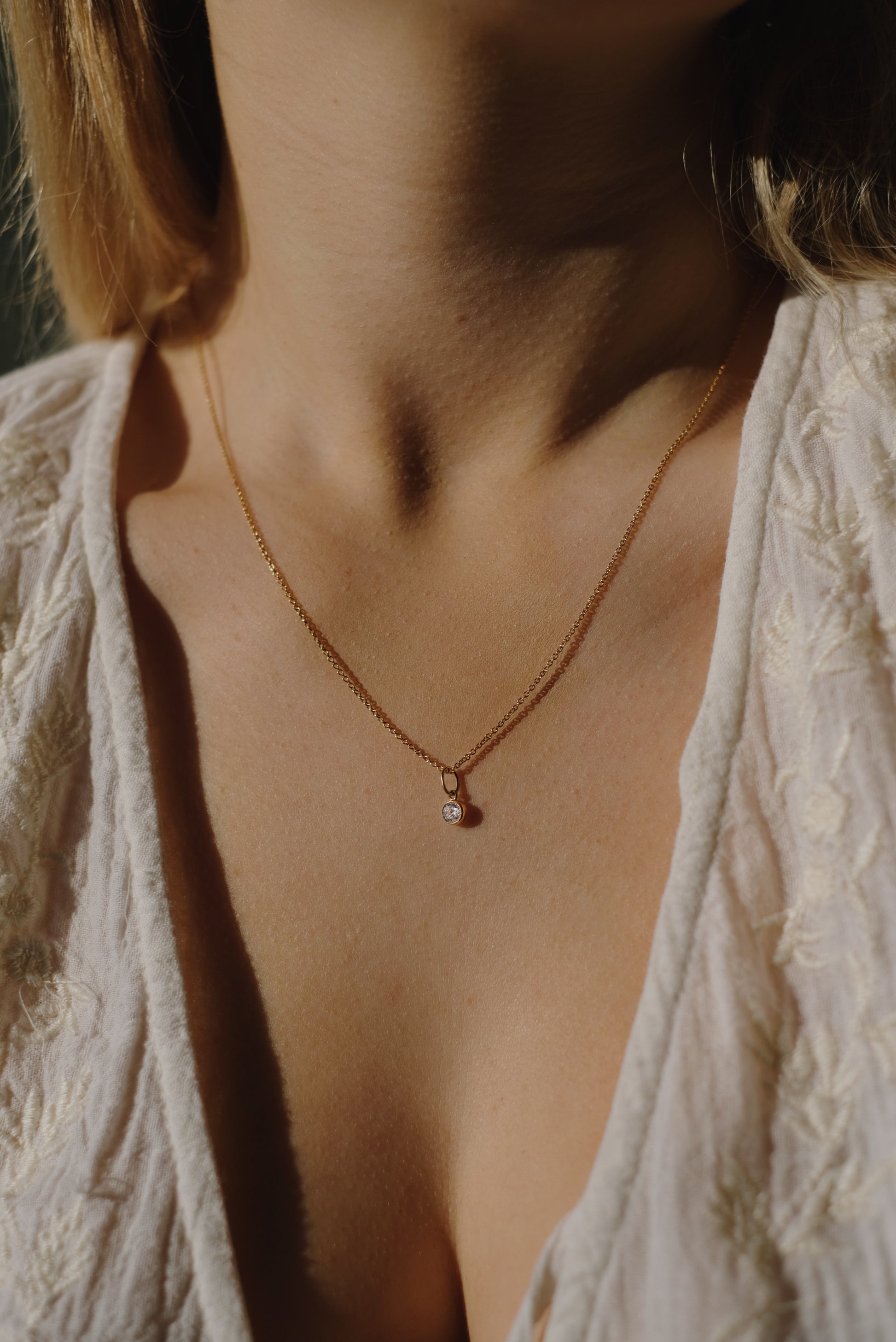Zierliche Halskette mit einem minimalistischen Zirkonia Anhänger. Kann elegant alleine oder mit anderen Halsketten kombiniert werden. Hübsch verpackt in einer Schmuckschachtel.
