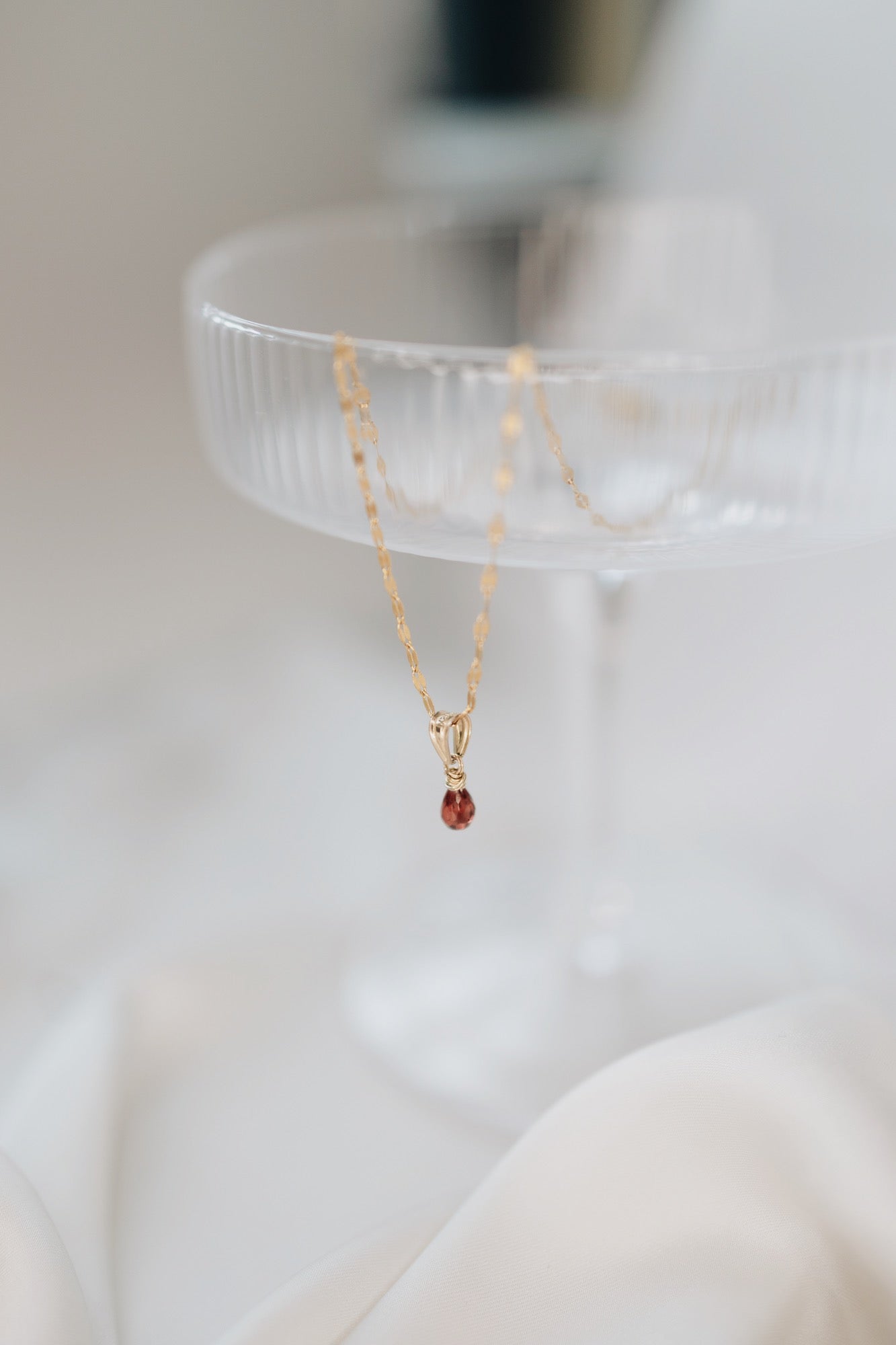 Schimmernde Halskette in 14K Gold Filled mit einem natürlichen Granat. Mit der besonders hochwertigen Vergoldung hast du lange Freude an deinem Schmuckstück. Schön verpackt in einer Schmuckschachtel.