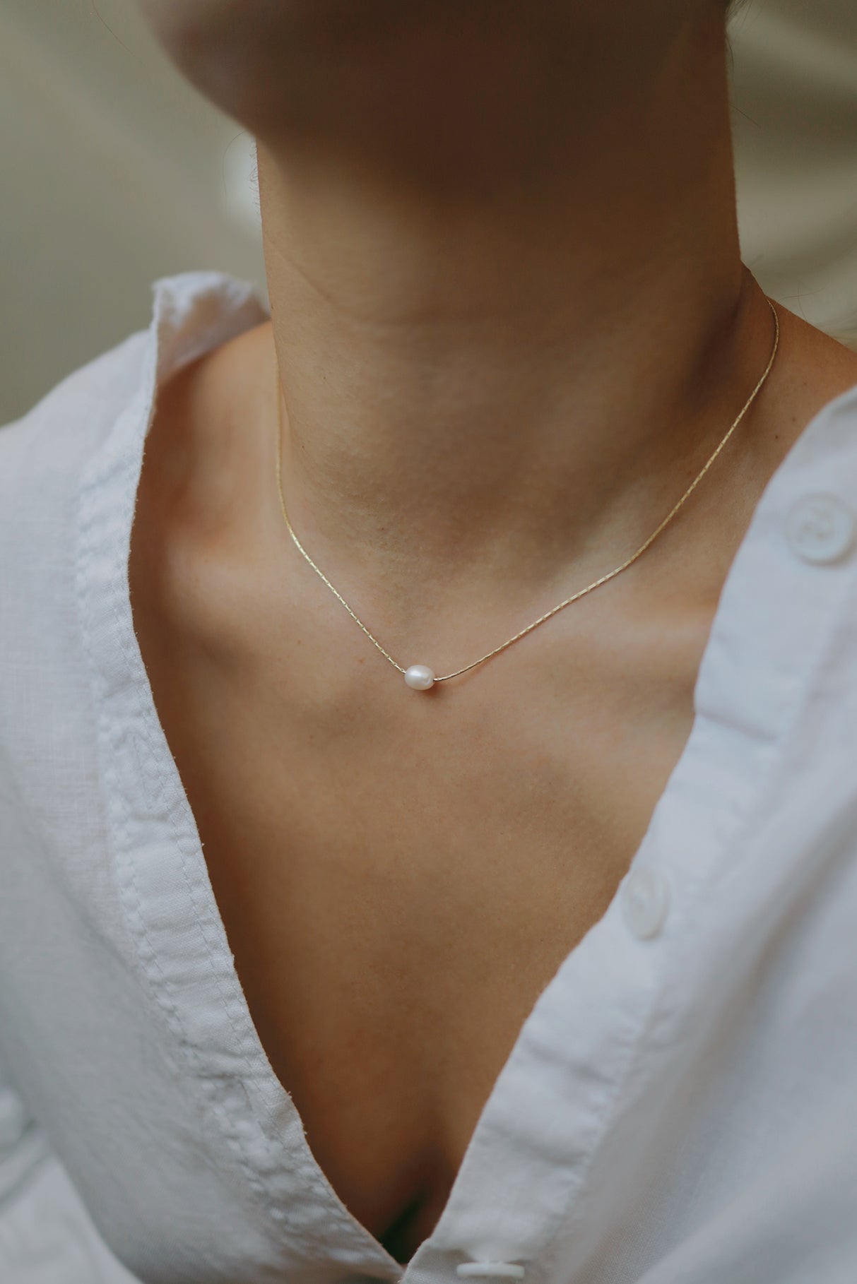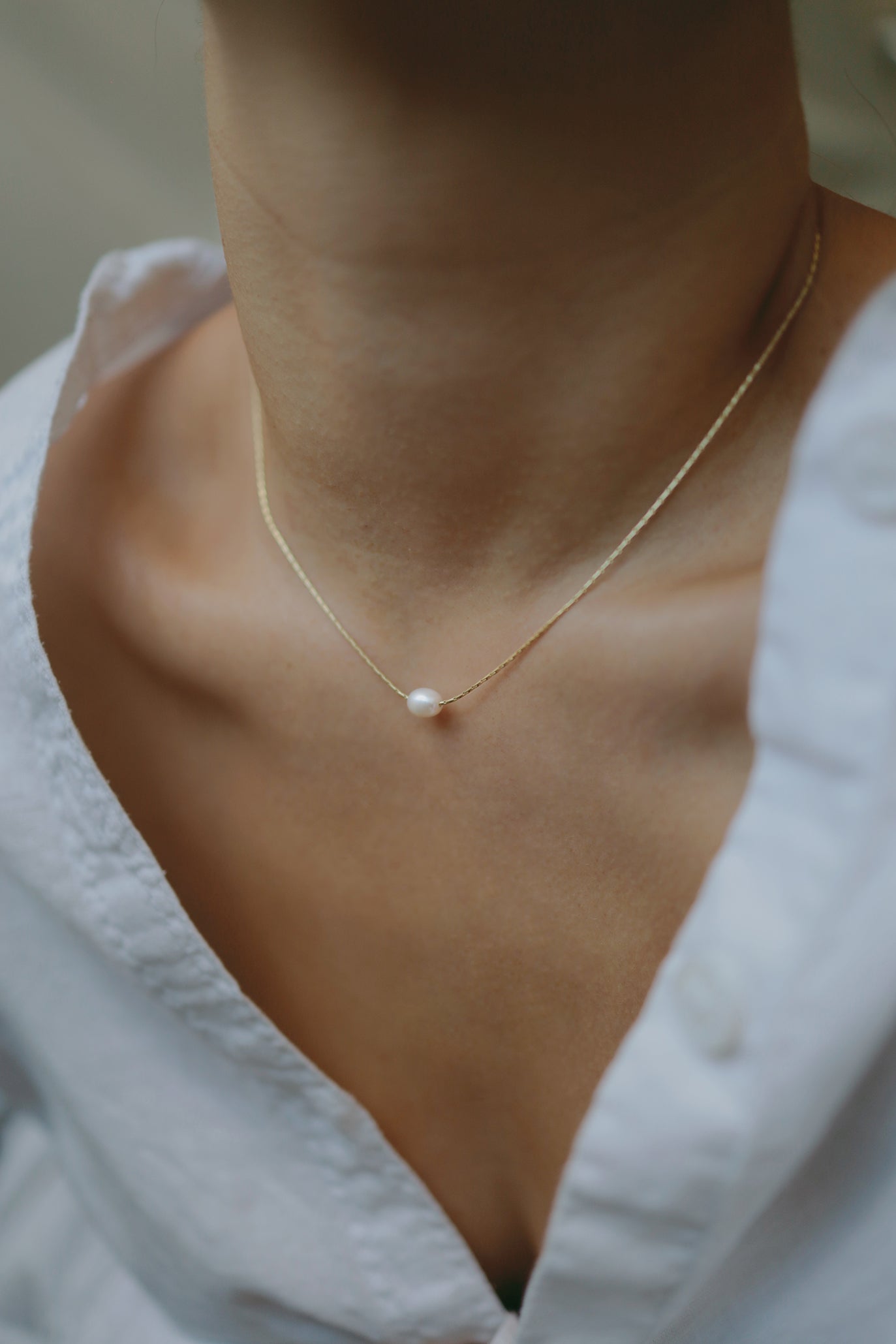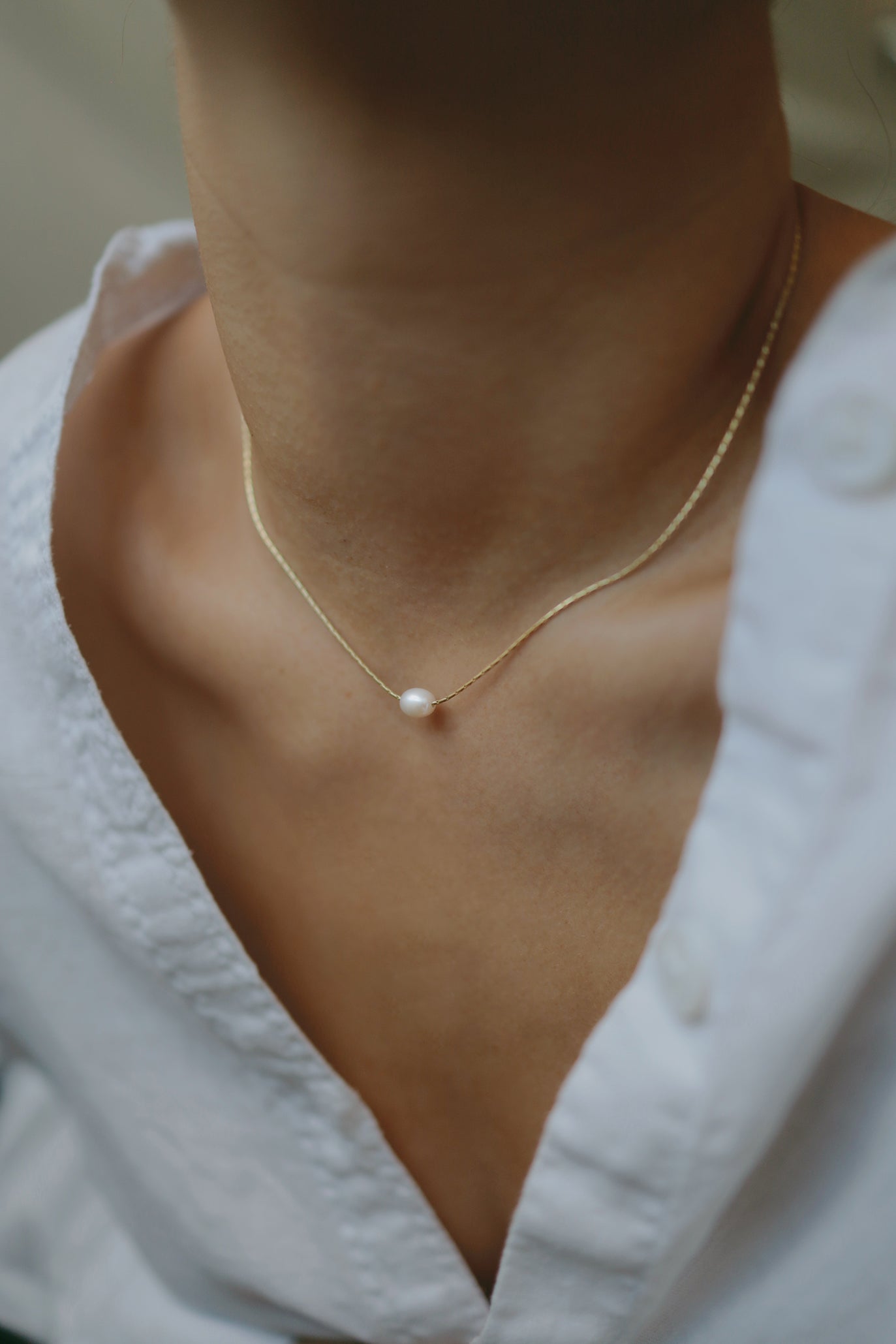 Eine wunderschöne zierliche Halskette, handgefertigt mit einer natürlichen Süßwasserperle.